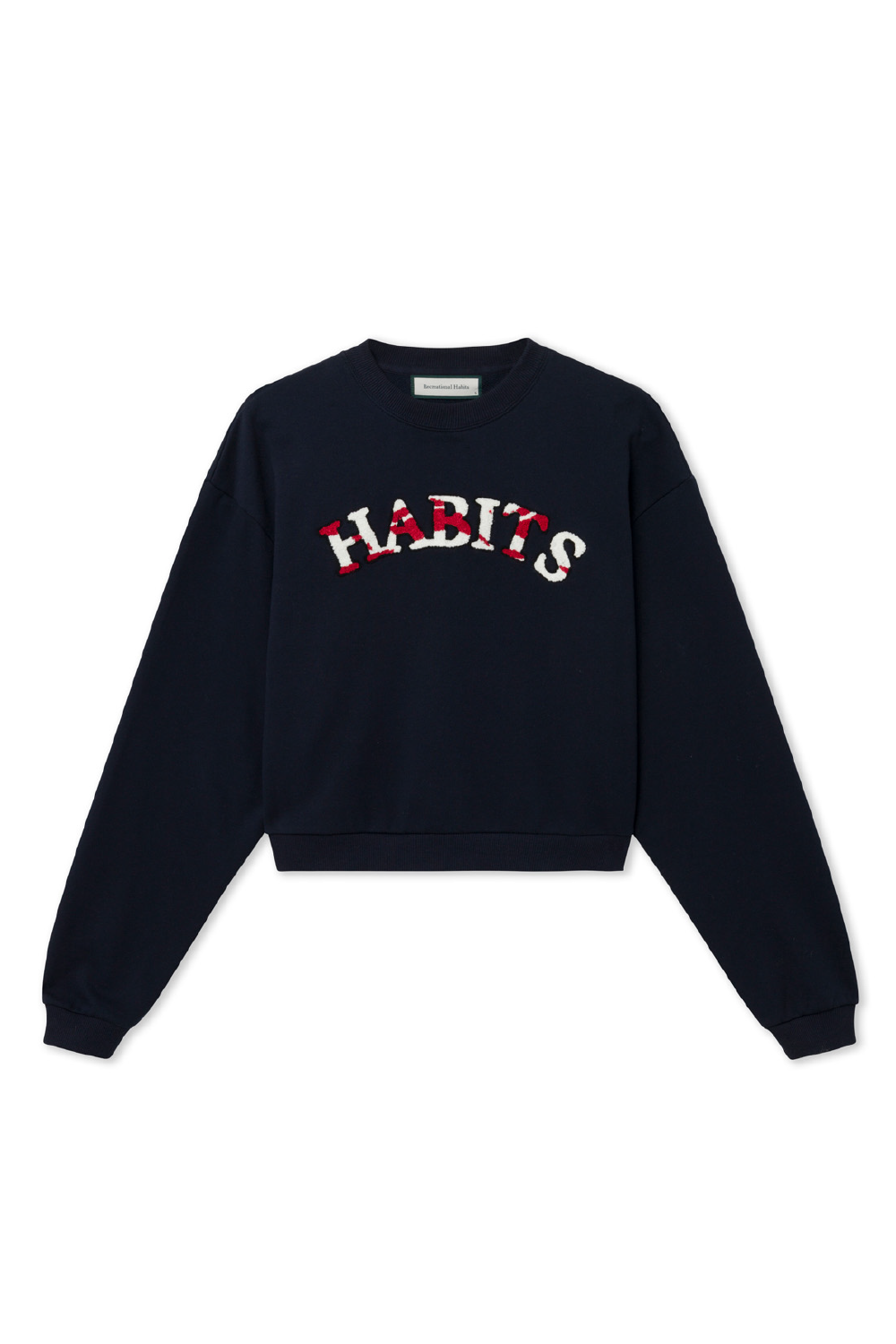 In collaboration with Keds, our Habits crewneck is a comfy cropped sweater that you can throw on anytime, anywhere. Decorated with a new "HABITS" chenille graphic filled with Keds heritage wave pattern. Made in our tried and true medium weight french terry, the Habits crew is perfect to layer over sports wear or as a stand alone piece.